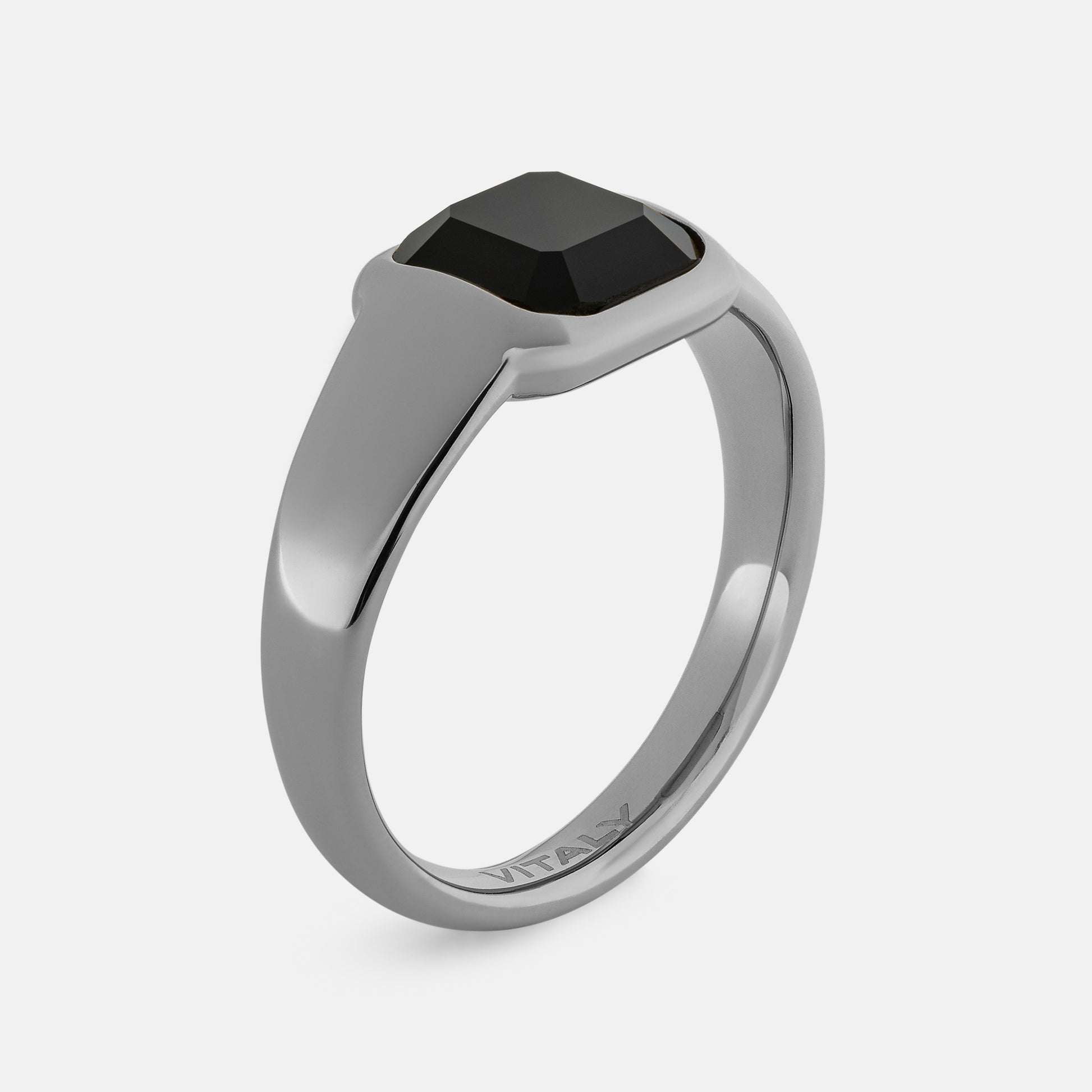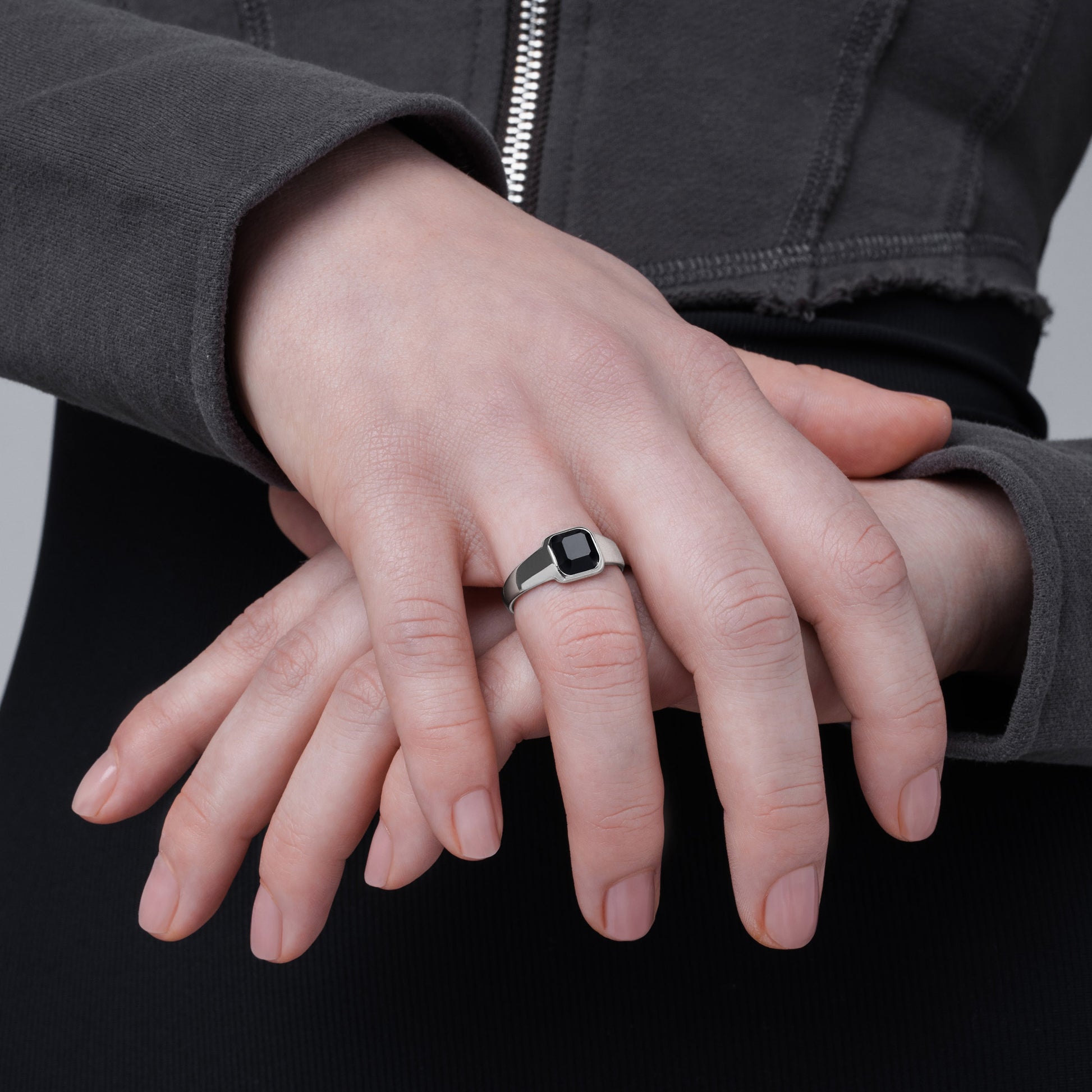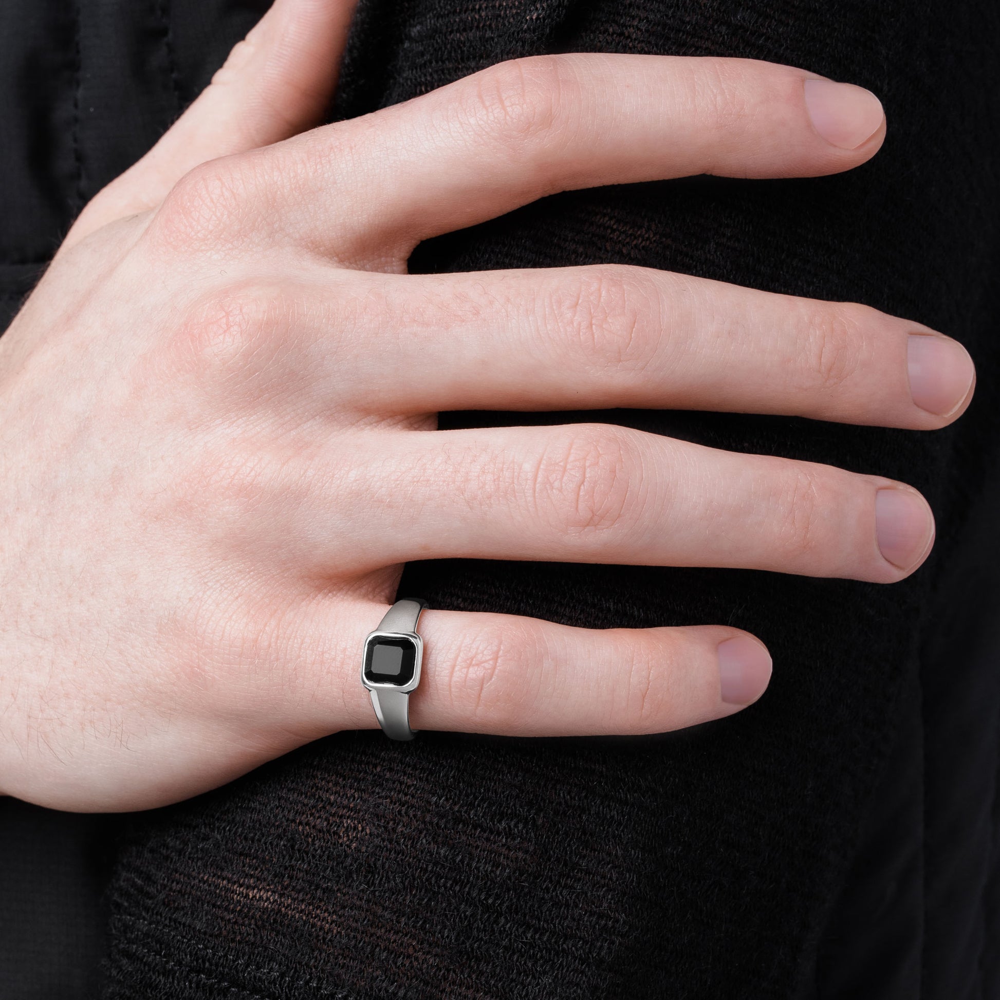 The Haze is a minimalistic signet ring adorned with either a green aventurine or black onyx stone, housed in a geometric casing that looks best when worn on the pinky or index finger.