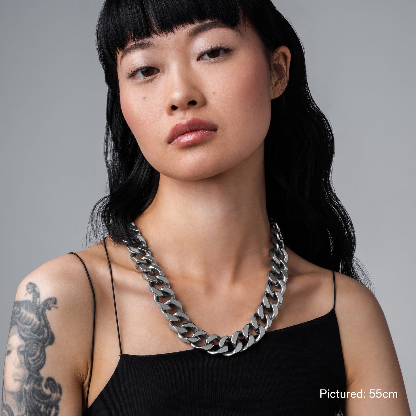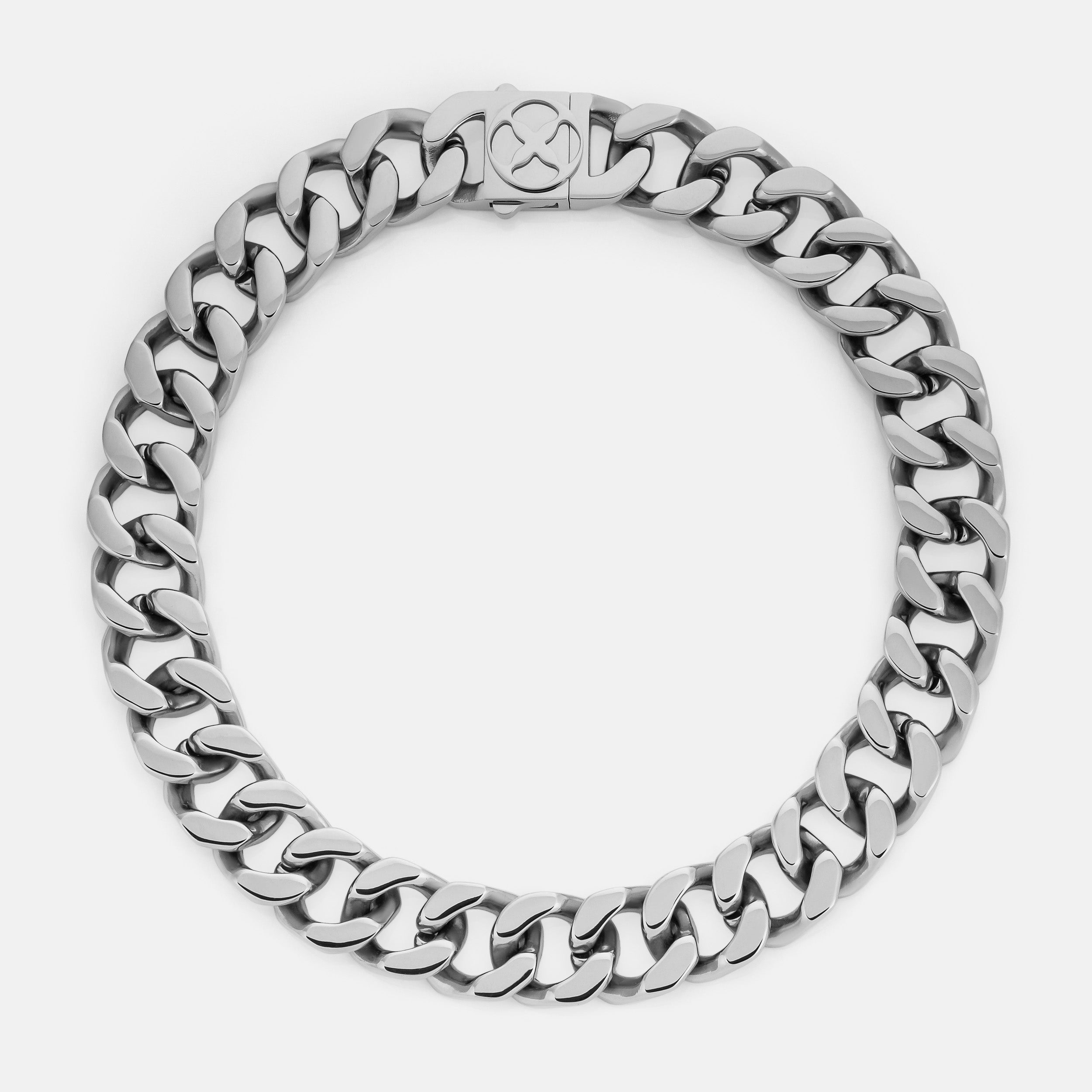 This heavy-duty choker chain is composed of a substantial 0.8" link and clamps shut with our signature Glyph buckle clasp. The double-sided clasp features a laser-etched logo on the reverse side and can be worn forwards, asymmetrically or at the back of the neck.
